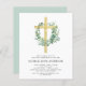 Der Eukalyptus und der Gold Cross Botanische Grüne Wasserfarbe Religiöse erste (1.) heilige Kommunion Einladungen.