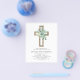 Der Eukalyptus und die Goldfolie des Green Floral Boys kreuzen botanische Vegetation Watercolor Religious First (1.) Heilige Kommunion Einladungen.