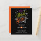 Mit den Worten "Essen, Trinken und Beängstigend sein" in einem lila, orangefarbenen, limatengrünen Stil und Retro-Typografie-Stil und mit Fledermäusen, Mond, Netzen und einer kleinen Spinne geschmückt, sind diese Halloween-Party-Einladungen perfekt, um Freunde und Familie einzuladen! Personalisieren Sie Ihre Halloween-Party-Details in weißer Schrift auf schwarzem Hintergrund. Farben sind veränderbar!
