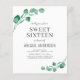 Budget Personalisieren Sie diese moderne Watercolor Greenery Eucalyptus Foliage Spring Style 16 . Geburtstag Party Einladung auf weißem Hintergrund mit Ihrer Nachricht und Details. Diese stilvolle Einladung beinhaltet elegantes und modernes botanisches Grün mit stilvoller Schrift-Typografie und eignet sich perfekt für Sweet 16 Birthday Party Feiern