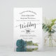 Dieses schöne Budget oder eine preisgünstige Hochzeitseinladung zeichnet sich durch ein romantisches Design mit einem Single aus, der sich in einer aquamarinen Rose befindet und in einem Wasserbecken reflektiert. Die Typografie umfasst eine lakate Skriptkalligraphie und ein ausgeklügeltes Layout. Die Rückseite ist türkisblau und marmoriert. Ein wunderbarer Weg, um Ihre Freunde und Familie einzuladen, um an Ihrem besonderen Tag an Ihrer Freude teilzunehmen.