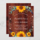 Für eine 40. Geburtstagsfeier (oder jedes Alter). Rustikal-braunes Holz als Hintergrund mit wasserfarbenen Sonnenblumen, Eukalyptusgrün und goldenen Blätter. Imitate vergoldeten Glitzer Staub. Personalisieren und fügen Sie Ihre Namen und Hochzeitsdetails.