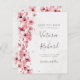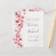 Eine moderne, elegante Blumenhochzeit bewahrt die Dattelkarte mit rosa Kirschblüten und moderner Kalligraphie auf einer handgemachten Papierstruktur.