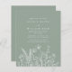Laden Sie Ihre Gäste zu einem besonderen Tag mit der "Modern Boho Sage Green Wildblume Wedding Invitation" ein. Dieses Design besticht durch sanfte, schlanke Grüntöne, gepaart mit zarten Wildblumen-Illustrationen, die moderne Boho-Elemente mit natürlicher Eleganz verbinden. Die schlichte, minimalistische Typografie ergänzt das erdige, Bio Gefühl der Wildblumen und schafft so ein elegantes und dennoch entspanntes Ambiente. Diese Einladung ist ideal für Paare, die eine rustikale, naturlich inspirierte Hochzeit im Freien planen und Set für ein unvergessliches Fest inmitten von Liebe und Naturschönheiten. Die weiche grüne Palette und die skurrilen Blumen machen es zu einer einzigartigen und schönen Wahl für Ihren Hochzeitstag.