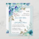 BUDGET blaue Aquarellfarben Blume Blumenminze grüne Hochzeitseinladung mit QR-Code für UAWG. Es zeigt Blumensträuße in Blau- und Minzgrün an den Ecken, während der Text in einem weißen Rahmen mit einem Rand platziert ist. Auf der Rückseite befinden sich Blumengärten im oberen und unteren Teil sowie der QR-Code.