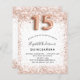 Für eine elegante Quinceañera, 15. Ein weißer Hintergrund. Dekoriert mit Rose Gold, rosa Imitat Glitzer, Glitzern. Personalisieren und fügen Sie einen Namen und Party-Details. Der Name ist mit einem handgeschriebenen Stil Skript geschrieben, Nummer 15 mit ballon Stil Schriftart.