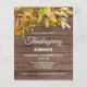 Mit dieser rustikalen Einladung laden Familie und Freunde zu einem Erntedank-Dinner ein. Es ist mit Herbstblättern in Aquarelltönen in Herbstfarben auf einem Stallholzboden dekoriert. Einfach anpassbar. Original Wasserfarbe © Michele Davies.