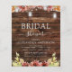Budget Rustikales Land Outdoors auf dunklem Holz mit Burgund, Orange und Gelb Sonnenblumen mit Mason Jars auf String Light Herbst oder Hochzeit im Herbst Bridal Shower Einladungen - beinhaltet schöne und elegante Schrift Typografie für die besondere Braut zu sein Feiern.