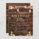 Budget Geburtstagsparty Rustikales Land Outdoors auf dunklem Holz mit Burgund, Orange und Gelb Sonnenblumen mit Mason Jars auf String Light Herbst oder Herbst Birthday Party Einladungen - beinhaltet schöne und elegante Schrift Typografie für die besondere Geburtstagsfeier.