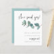 Budget Sie sagte ja Eukalyptus-Verlobung. Ein Preis SMALLER 4,5" x 5,6" Alternative. Erhältlich in einem SEMI-GLOSS 110 lb CARD STOCK, der die Standardoption (dicker für Einladungen) ist, ODER einem SATIN FINISH 80 lb THINNER PAPER STOCK (ideal für Gehäuse). Moderner minimalistischer Stil mit einem Single Zweig von aquamarinen blauen Eukalyptus-Blätter von der rechten Seite und einem informellen Set-Skript für She Said Yes und Verlobung. Personalisieren Sie die Erholung des Textes einfach auf Ihre Daten.