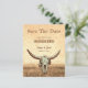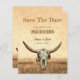Budget Western Land Vintag beige braun antiken Cowboy-Stil Hintergrund. Spaß Hochzeit speichern Sie das Datum flache Karten. Rustikale Einladungen des Bullenskull. Nutzen Sie einen kleinen Spaß mit diesem niedlichen, lustigen Bauernhaus-Design. Typografie kann personalisiert sein. Alter wilder Westen, einzigartig. Cooles, trendiges Landtier. Passen Sie Skripte und Typografie an. Bildrecht Marg Seregelyi Fotografie.