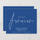 Eine günstige BUDGET-Alternative für eine kleinere Größe von 4,5 x 5,6 Zoll, die ein Gewicht von 110 lbs hat, die ähnlich dick ist wie eine Postkarte (sie ist jedoch nicht als Postkarte geeignet). BITTE BEACHTEN SIE, DASS ES EINE Einladung pro Blatt gibt. Budget Wir entschieden uns für Forever Mid Blue Save the Date. Elegantes Typografie-Design, um Ihre Gäste einzuladen, um Ihr Datum retten. Wir entschieden uns für Forever, welches in einem stilvollen Set-Skript ist in der Mitte. Die Erholung des Textes können Sie leicht personalisieren. Text- und Hintergrundfarben können geändert werden, wenn Sie Ihr Hochzeitstil besser Anzug über die weitere Option anpassen möchten.