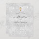 Eine moderne, elegante und minimalistische Einladung für Jungen und Mädchen. Imitate silber metallische Hintergrund mit Imitaten Glitzer Staub verziert. Personalisieren und fügen Sie einen Namen und Details. Schwarze Buchstaben.