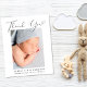 Eine preisgünstige Kindermädchen- oder Babygeburtserklärung mit dem Foto Ihres Neugeborenen und "Danke" in einer eleganten zeitgenössischen Schrift mit Herzschlag. Personalisieren Sie mit seinem vollständigen Namen, Ankunftsdatum und Geburtsdaten in der modernen Typografie. Auf der Rückseite, fügen Sie ein zusätzliches Foto und anpassen Sie Ihre Ankündigung und danke Ihnen Nachricht.