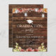 Budget Rustikales Land Outdoors auf dunklem Holz mit Burgund, Orange und Gelb Sonnenblumen mit Mason Jars auf String Light Herbst oder Herbst Class von 2022 High School oder Uni-Abschluss Party Einladungen - beinhaltet schöne und elegante Schrift Typografie für die besondere Geburtstagsfeier.