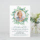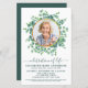Moderne Eukalyptus Gedenkfeier / Feier des Lebens Einladung. Diese Beerdigungseinladungen mit Beileid sind mit einem Foto in einem eukalyptusgrünen Kranz-Design versehen. Personalisieren Sie diese Feier der Beerdigung des Lebens mit Ihren Lieben Fotos, Name & Daten, Veranstaltungsdetails. COPYRIGHT © 2021 Judy Burrows, Black Dog Art - Alle Rechte vorbehalten. Haushaltsfeier zum Eukalyptus-Foto
