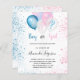 Für ein Geschlecht zeigen Babydusche. Ein schick weißer Hintergrund. Glitzer und Blau, rosa und weiße Ballons und Staub aus Glitzer. Personalisieren und fügen Sie den Namen der Mutter zu sein und Party-Details. Der Name und der Text: Junge oder Mädchen werden mit einem handgeschriebenen Stift geschrieben