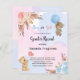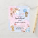 Für eine moderne Babydusche im bohobischen Stil, zeigen die Geschlechter das Party. Blau, rosa, weiß, Aquarell. Mit Rose Gold, rosa und hellblauen Blumen, Rose, Pampas Gras und zwei Teddybären mit Ballons dekoriert. Personalisieren und fügen Sie einen Namen und Party-Details hinzu.