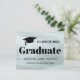 Schicken Sie Ihren Abschlüssen und Freunden diese stilvolle Budget-Ankündigungskarte. Dieses Design ist mit einem Grauglasprint im Hintergrund mit einer Graduierenkappe versehen. Personalisieren Sie es mit Ihrem Namen, Schule und Jahr.