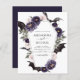 Halloween 31. Oktober Herbst Herbst Dunkle Wasserfarbe Lila und Grüne Hochzeitseinladungen auf schwarzem Hintergrund - beinhaltet eine beängstigende und elegante Schriftzeichen-Typografie mit modernen Blume und Bat Wings für die besondere Creepy Wedding Day Feier.