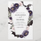 Halloween 31. Oktober Herbst Herbst Dunkle Wasserfarbe Lila und Grüne Hochzeitseinladungen auf schwarzem Hintergrund - beinhaltet eine beängstigende und elegante Schriftzeichen-Typografie mit modernen Blume und Bat Wings für die besondere Creepy Wedding Day Feier.