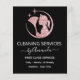 Eine rosa Rose Gold Maid Glitzer Silhouette und elegante Skriptkalligraphie mit schwarzem Hintergrund für die Reinigung Service FLYER gibt ihm eine luxuriöse Touch. Fügen Sie Ihren Namen, Ihre E-Mail und andere Details hinzu. #cleaningbusiness card ##luxurycleaningservices #maidSilhouette