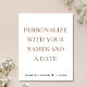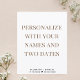 Eine preisgünstige Veranstaltung oder kleinere Hochzeitsankündigung, um Familie und Freunde darüber zu informieren, dass sich Ihre Hochzeitspläne geändert haben, und Sie haben bei Ihrer Hochzeit die Anzahl der Gäste erhöht oder reduziert und sie zu einem Hochzeitsempfang oder Party eingeladen. Die Vorderseite zeigt "Happily Ever After Party" in einer Mischung aus einfacher Typografie und einem eleganten Drehbuch mit Swashes, und Sie können Ihre Nachricht und Einladung detaillierter und Ihre Namen in einem signaturähnlichen Skript personalisieren. Auf der Rückseite finden Sie Ihre Vornamen und das Hochzeitstermin. Dieses halbglänzende Haushaltspapier ist gewichtsähnlich wie Foto. Es ist auch eine größere 12x18-Kartenversion verfügbar (für den Link die Meldung).