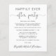 Eine preisgünstige Veranstaltung oder kleinere Hochzeitsankündigung, um Familie und Freunde darüber zu informieren, dass sich Ihre Hochzeitspläne geändert haben, und Sie haben bei Ihrer Hochzeit die Anzahl der Gäste erhöht oder reduziert und sie zu einem Hochzeitsempfang oder Party eingeladen. Die Vorderseite zeigt "Happily Ever After Party" in einer Mischung aus einfacher Typografie und einem eleganten Drehbuch mit Swashes, und Sie können Ihre Nachricht und Einladung detaillierter und Ihre Namen in einem signaturähnlichen Skript personalisieren. Auf der Rückseite finden Sie Ihr Lieblings-Foto, Ihre Vornamen und Ihr Hochzeitstermin.