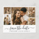 Budget Elegant Modernes Minimalistisches KalligraphieScript 5 Foto Collage Save the Date Flyer in Schwarz und Weiß. Dieses zarte romantische Design ist perfekt für eine moderne Hochzeit. Enthält 5 (fünf) Grid-Foto Collage, eine whimsical Kalligraphie in handgeschriebenen Stil Swash Schwanz Schriftart. Einfach zu personalisieren mit Ihren Hochzeitsdetails und Bild. Billig günstige Flyer.