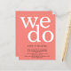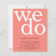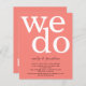 Eine günstige BUDGET-Alternative für eine kleinere Größe von 4,5 x 5,6 Zoll, die ein Gewicht von 110 lbs hat, die ähnlich dick ist wie eine Postkarte (sie ist jedoch nicht als Postkarte geeignet). BITTE BEACHTEN SIE, DASS ES EINE Einladung pro Blatt gibt. BUDGET Einfache Korallen Rose Text QR Code Einladung Hochzeit. Fügen Sie Ihren QR-Code zu Ihrer Hochzeitswebsite auf der Rückseite hinzu, damit Ihre Gäste alle Details online sehen können, ohne separate Gehäuse benötigen zu müssen. Moderne Typografie mit We Do in großen weißen Buchstaben an der Spitze und Namen und Details unten auf einem Hintergrund von Korallen Rose rosa.