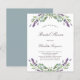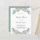 Weiß mit Lavendel-Blume und Eukalyptusgrün dekoriert. Personalisieren und einen Namen und Details. Zurück: grüner grauer Hintergrund.