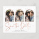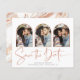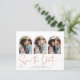 Handgeschriebene Save the Date Copper Rose Gold Marble Multiple Foto Card in einem eleganten Schriftart, der ein romantisches handgeschriebenes Gefühl hervorruft. Auf der Rückseite ist eine modische koppery Rose goldgeflochtene Adern, die durch klassischen Marmor laufen. Entworfen, um drei Ihrer Lieblings-Fotos in unseren trendigen Boho-Bögen für zusätzliche Anpassung zu verwenden. Fügen Sie einfach Ihre Namen und Daten für ein wirklich personalisiertes Design hinzu. **Unser BUDGET Papier ist kleiner, leichter und zarter, aber trotzdem schön! Vergessen Sie nicht die Umschläge!** Wenn Sie Hilfe oder passende Artikel benötigen, kontaktieren Sie uns bitte unter cedarandstring@gmail.com.