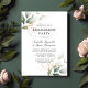 Elegante und trendige ENGAGEMENT PARTY Einladungen mit tiefgrünem Blätter, Salbei und Oliven, Blatt, Eukalyptuszweige, Blätter - botanisches Boheme Thema. Imitate Goldfolie. Ideal für jedes Jahr oder Hochzeitsthema. Delikates Design in Aquarellfarben lackierte Blätter. Zurück der Karte hat Future Mr. und Mrs. Name. Ideal für preiswertes Party.