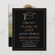 2023 Budget Personalisieren Sie diese Gold und Black Stylish Graduation Party Einladung auf weißem Hintergrund mit Ihrer Nachricht und Details. Diese stilvolle Einladung beinhaltet ein Foto auf der Rückseite mit niedlicher und eleganter Schriftzeichen-Typografie für die spezielle High School oder Uni Graduate.