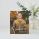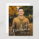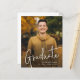 Eine Budget 2 Foto Abschluss Announcement-Karte mit handgeschriebenem Schriftart, komplettes Porträt-Foto auf der Vorderseite mit Namen und Abschluss-Details. Die Rückseite hat ein zweites Foto mit weiteren Details. Klicken Sie auf die Schaltfläche Bearbeiten, um dieses Design anzupassen.