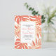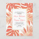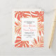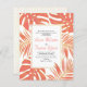 Moderne lebende Korallen und Goldmonstera und Palmen Blätter BUDGET Tropische Hochzeitseinladung. Im Mittelpunkt dieses wunderschönen Designs steht ein Muster tropischer lebender Korallen-Blätter mit goldener Kontur, während sich Ihr Text in einem weißen Rahmen befindet. Auf der Rückseite befindet sich ein goldenes Punktmuster.