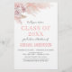 Budget Personalisieren Sie diese Boho Blush Rosa, Weiß, Moderne und Elegant Stilvolle Watercolor Frühjahr 2023 Graduation Party Einladung auf weißem Hintergrund mit Ihrer Nachricht und Details fügen Foto auf der Rückseite. Diese schicke Einladung beinhaltet Rose-Blume und modernes Pampas-Gras mit niedlicher und eleganter Schriftzeichen-Typografie für den besonderen Schulabschluss oder Uni-Graduate.