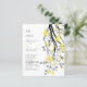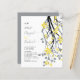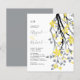 BUDGET Ultimativer grauer Zweig mit leuchtenden gelben Blumen Initialen Hochzeitseinladung. Ein schönes Design für Ihre Hochzeit mit einem kaskadenförmigen grauen und schwarzen Zweig mit gelben Blüten. Der Rücken ist grau.