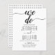BUDGET "We do" elegante kursive Skript handschriftlich Stil Kalligraphie Schwarz-Weiß Hochzeit Einladung mit QR-Code auf UAWG. Auf der Rückseite befinden sich ein geometrisches Schwarzweißmuster und der QR-Code.