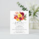 Eleganter Fall Blume Bouquet Top in diesem hübschen Herbst Herbst in Liebe Braudusche Einladung. Burgunderrot, Rosa, Rosa rot, hellgelb und orange Blume sind in grünem Blattwerk und Blätter eingebettet. Die rustikale Anordnung Pop vor dem weißen Hintergrund. Der einfache Text schafft ein modernes Design. Diese Einladung ist Teil der Stets Brautparty Kollektion, die die DIY-Vorlagen enthält, die Sie benötigen, um eine einzigartige Brautdusche-Einladungs-Suite und Dekoration und Ausstattung mit Brautparty zu kreieren.