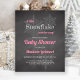 Die Babydusche dieses Wintermädchens zum Thema Schneeflocke lädt mit subtilen grauen Schneeflocken auf einem Chalkboard-Hintergrund zum Verweilen ein. Personalisieren Sie den rosa und weißen Text mit dem Namen der Mama-to-be und Dusche Details. Die Rückseite weist das gleiche Schneeflockenmuster auf der Tafel auf.
