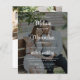 Eine moderne und trendige All-in-One-Foto-Hochzeitseinladung, die Ihre Hochzeitsinformationen über einem Ihrer Lieblingsfotos zeigt, mit einem schwarz-transparenten Overlay und einem eleganten, weißen Script, aber mit einem Blick auf das Budget. Einfach mit den Details Ihrer Hochzeitsfeier in Weiß anpassbar für ein romantisches, modernes und stilvolles Ambiente. Die Rückseite der Karte zeigt ein zweites Bild, Ihre Online-UAWG und das Fälligkeitsdatum, einen individuell anpassbaren QR-Code, um Ihre Gäste auf Ihre Hochzeitswebsite, Ihre Monogramme und Ihr Hochzeitsdatum zu leiten.