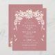 BUDGET Weiße florale Kaskadenkärte Rose staubige rosa Hochzeit im Herbst Einladung. Eine wunderschöne weiße Kaskadengarage schmückt diese Hochzeitseinladung mit goldenen Konfetti.
