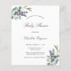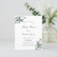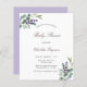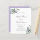 Ein stilvoller weißer Hintergrund auf der Vorderseite. Mit Eukalyptus und Lavendel-Blumen dekoriert. Personalisieren Sie Ihre Namen und Details und fügen Sie diese hinzu. Zurück: Lavendelhintergrund.