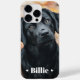Handy-Gehäuse mit dem Namen des Haustieres als weißes Foto, flankiert von zwei Herzen.