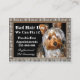 Wann hat das Hündchen einen schlechten Tag, das sie gehend zu nennen sind? Manchmal geht das Familienhaustier zu lang, ohne sich zu pflegen und diese einzigartige Karte ist eine schnelle Erinnerung, dass Sie im Geschäft sind, zum ihnen des besten Services ihrem wertvollen Hündchen anzubieten. Redigieren Sie mit Ihrer eigenen Schriftartwahl und -art, wenn Sie besonders anfertigen, um Ihre eigenen Informationen zu addieren.