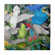 Ursprünglicher Entwurf der feinen Kunst der bunten Haustierpapageien von den Macaws zu den afrikanischen Graun durch Künstler Carolyn McFann druckte auf einer Qualitäts-Keramikfliese für Papageienliebhaber.