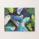 Ursprüngliche Kunstmalerei der bunten Budgerigarpapageien durch Künstler Carolyn McFann zwei des schnurrenden Katzen-Studios druckte auf einem Puzzlen der Qualität für Papageienliebhaber.