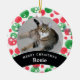 Erinnern Sie sich an Ihr geliebtes Haustier immer mit dieser personalisierten Verzierung. Dieses personalisierte Andenken kennzeichnet festliche rote und grüne Watercolorpolkapunkte. Sie können Ihr Katzen- oder HundFoto in der Mitte und in ihrem Namen an der Unterseite, unterhalb des Textes hinzufügen, der "frohe Weihnachten" liest (die auch veränderbar ist).