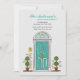 Diese bewegliche Mitteilung kennzeichnet eine aquamarine Tür, die mit Topiarypflanzern und Ihrer neuen Hausnummer gekennzeichnet wird.